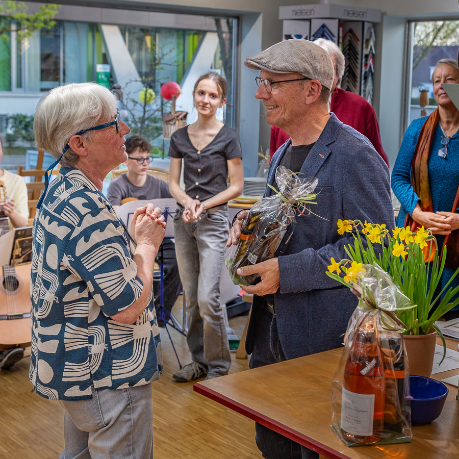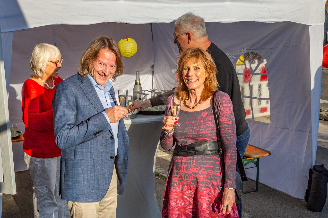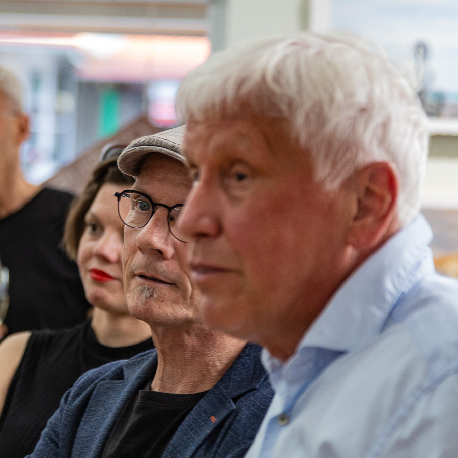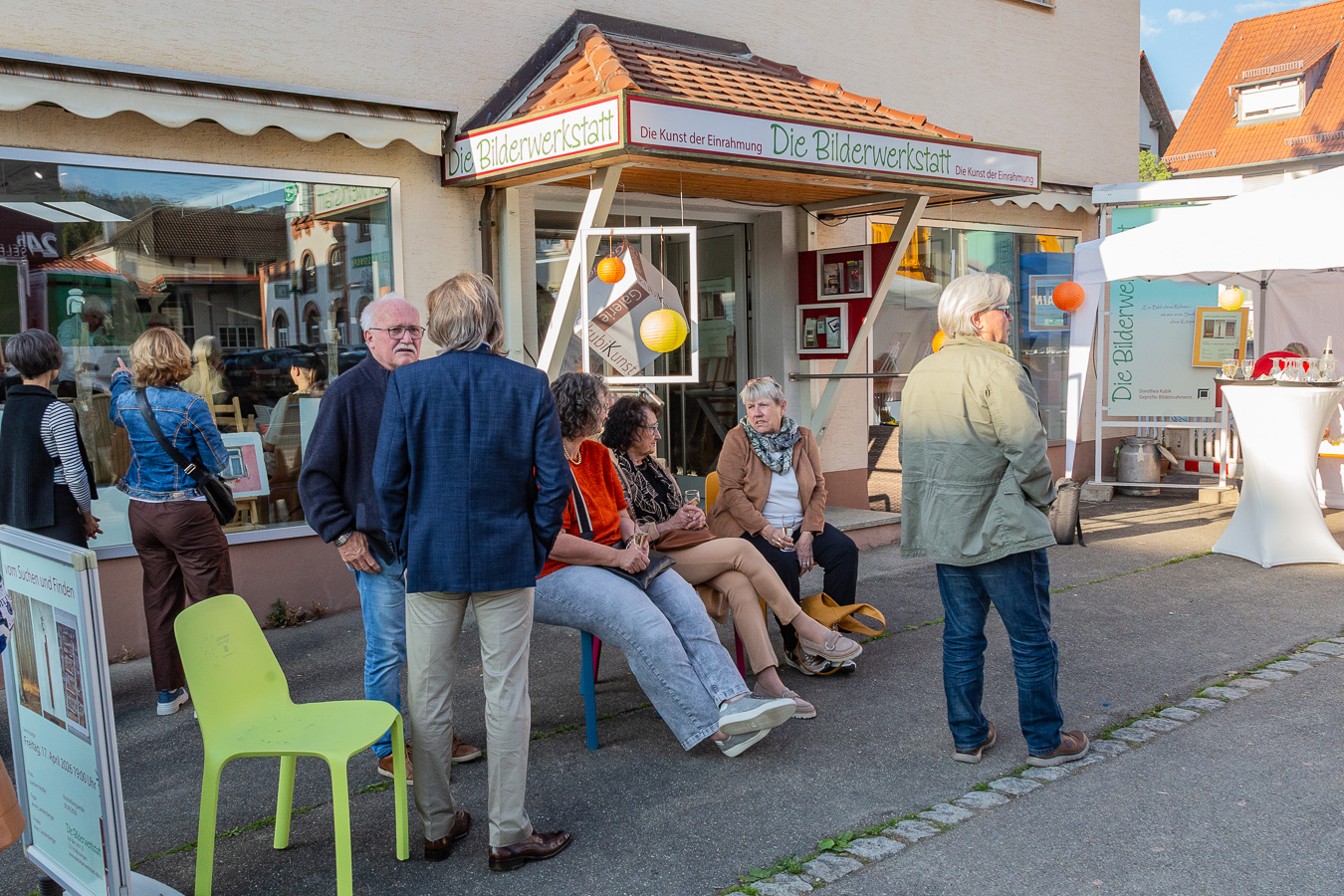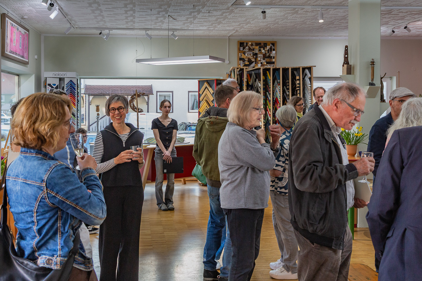 Musikalisch begleiteten Frederik Steinbrecher, Sarah Joos und Ben Speidel an den Gitarren und Pauline Ordowski, Gesang, von der Jugendmusikschule Steinlach e. V. den Abend. Bei einem kleinen Imbiss nahmen die rund 60 Gäste die Gelegenheit wahr, mit den Kunstschaffenden ins Gespräch zu kommen und sich über deren Arbeiten auszutauschen.