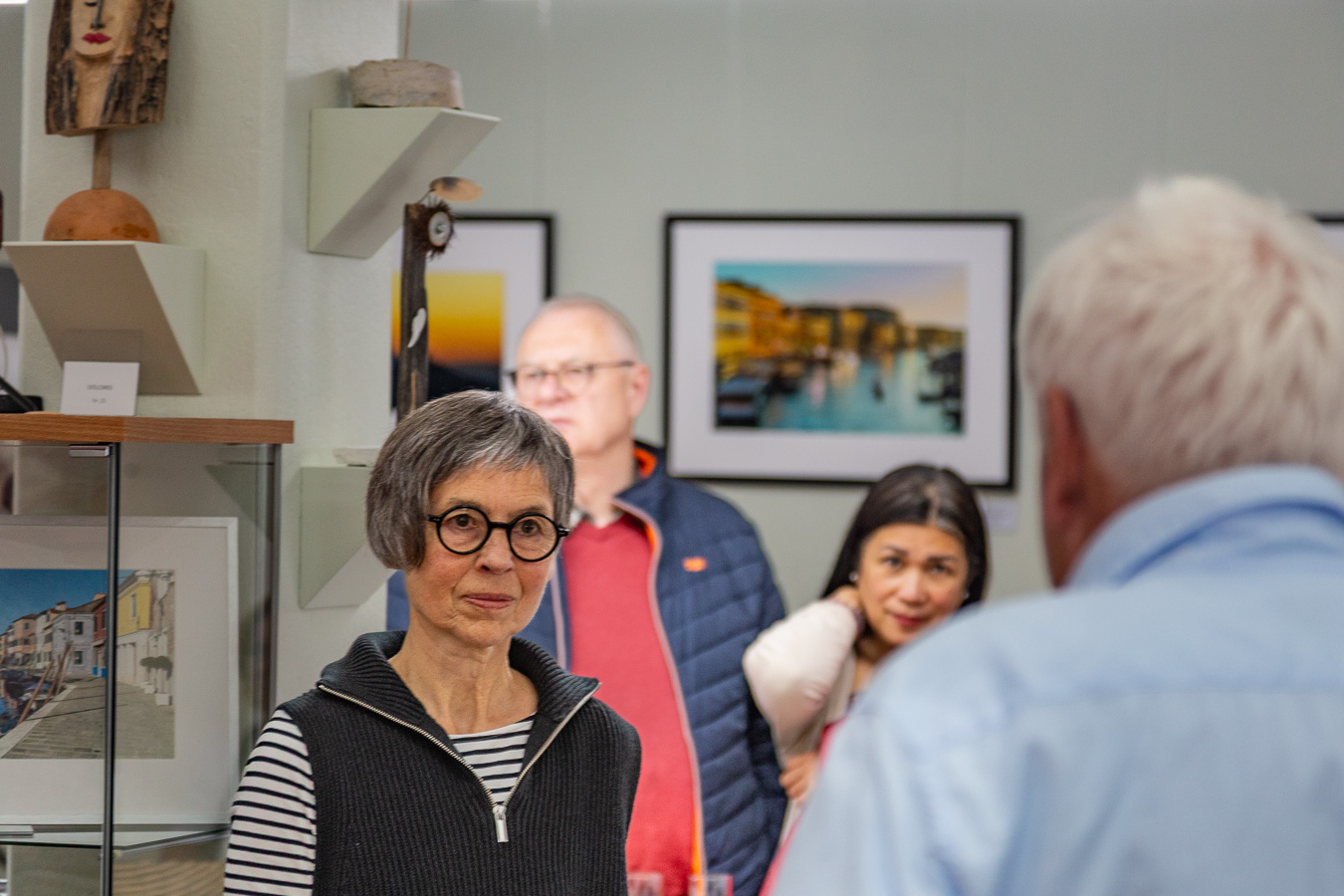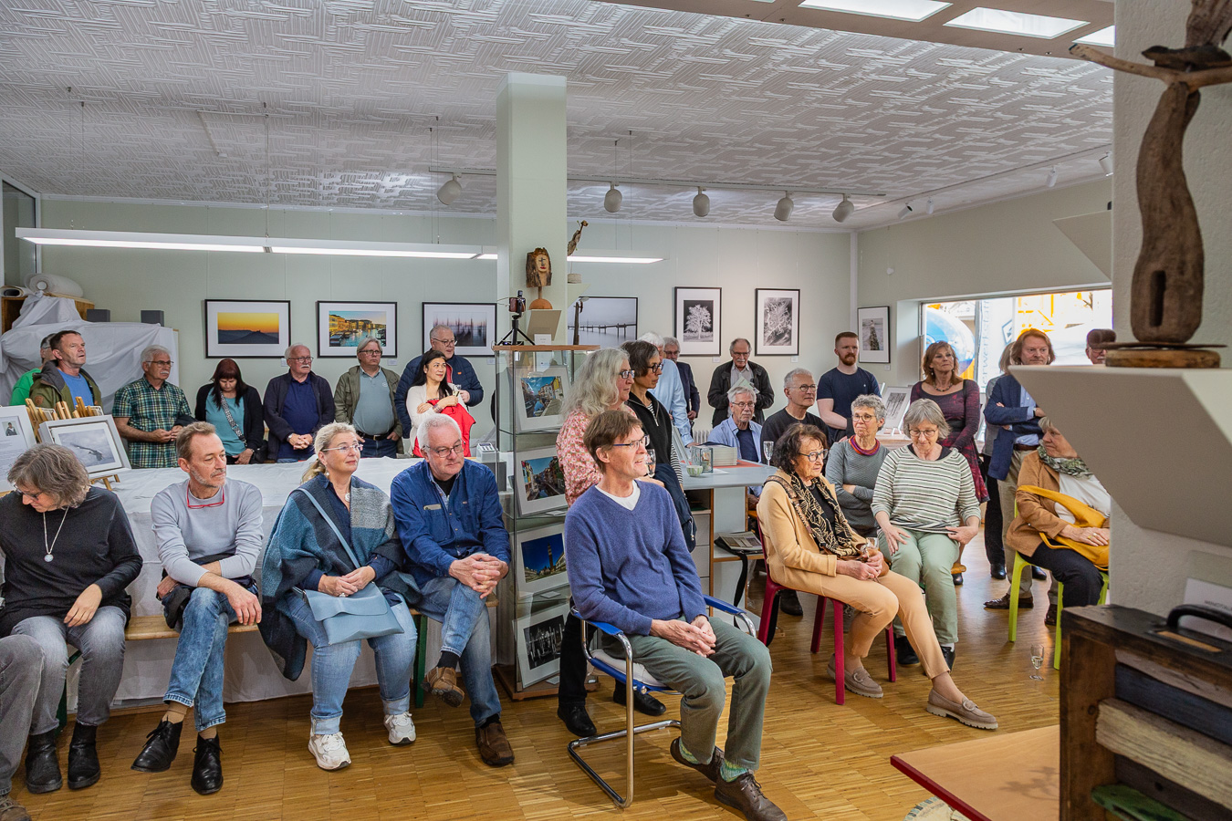 Nachdem Dorothea Kubik die Gäste begrüßt hat, stellte Prof .Dr. Christoph Fasel belebend und kurzweilig die drei Kunstschaffenden und ihre Werke vor.
