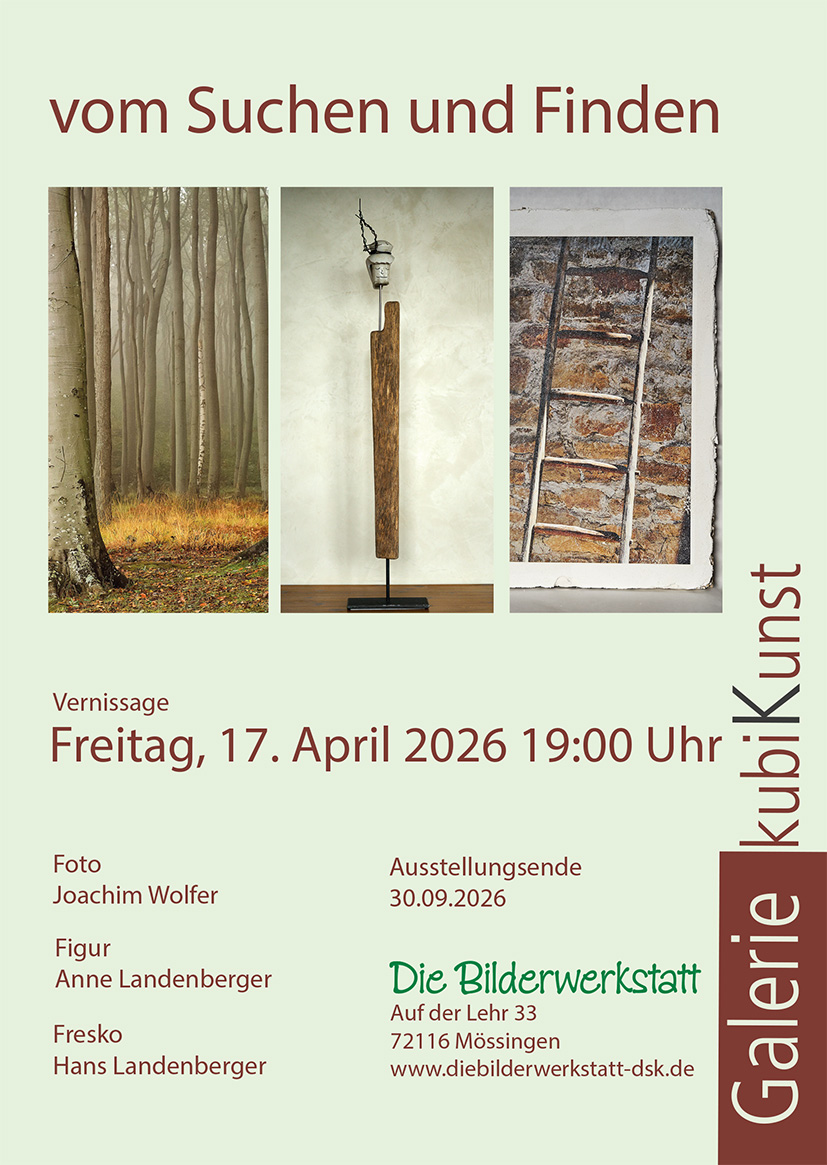 Am 17. April 2026 eröffnete Dorothea Kubik in der Galerie kubiKunst mit einer Vernissage die dritte Kunstausstellung mit dem Titel: „vom Suchen und Finden“